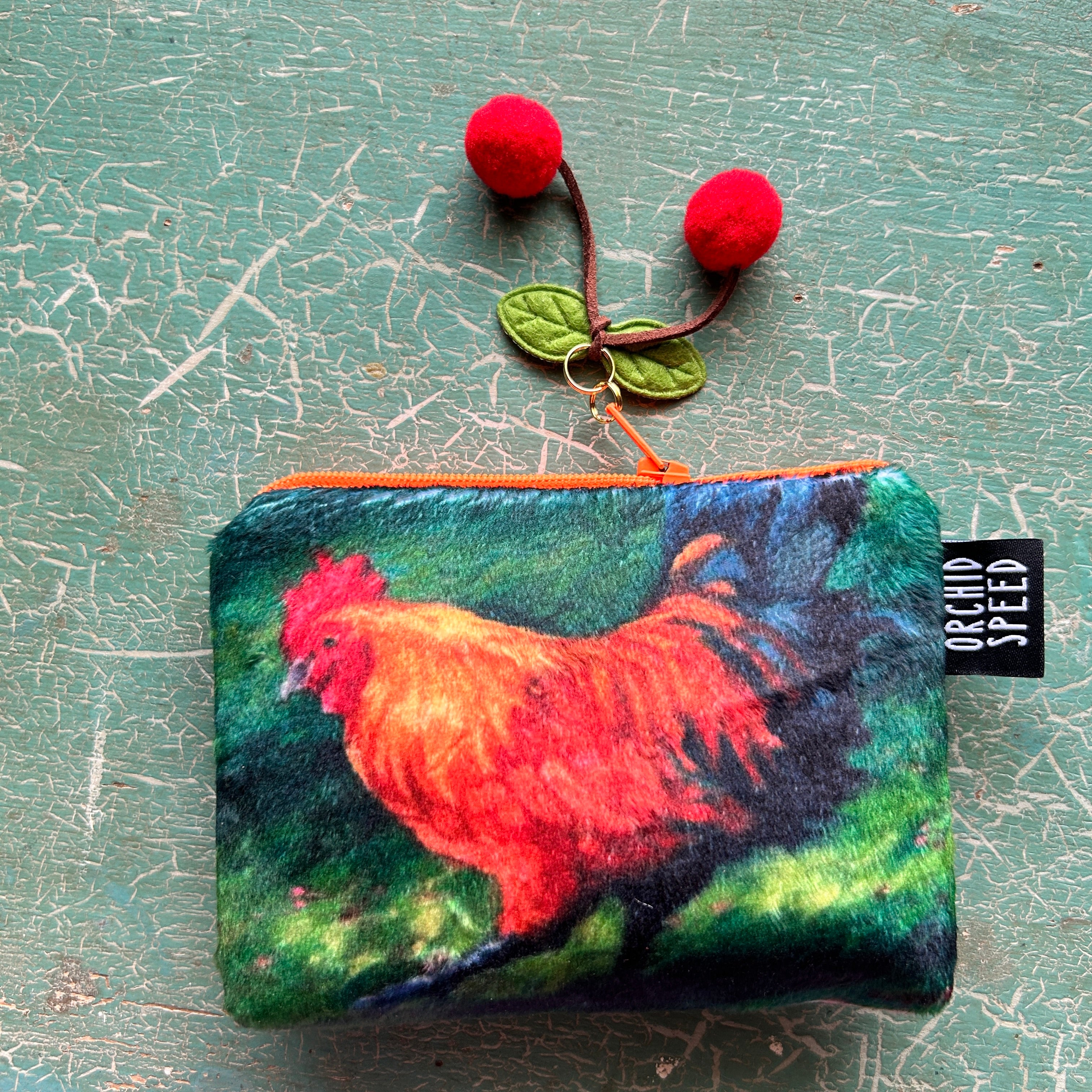 Material: Mike Carrollʻs art exterior, Aloha shirt fabric interior, cherry charm